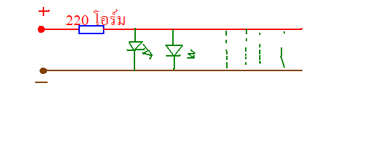 ก้อคือไฟของเดิมเส้นแดง วิ่งผ่านอาร์ค่า 220 โอร์ม (อย่าน้อยกว่านี้) แล้วก้อไปผ่าน LED ต่อแบบ ขนานกัน